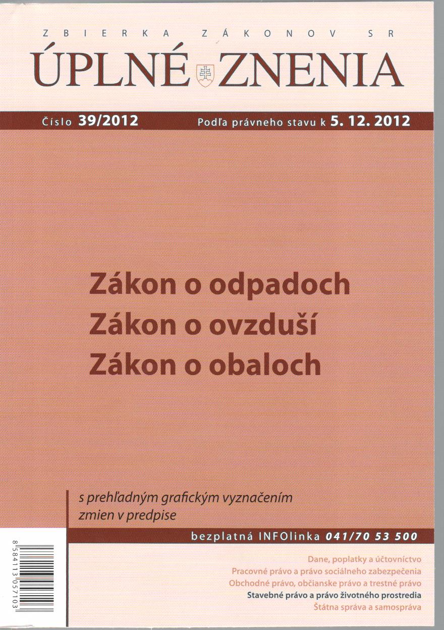 - Úplné znenie zákona č.223/2001 Z.z. o odpadoch po zmene zákonom č.343/2012 Z.z. s účinnosťou od 1.1.2013